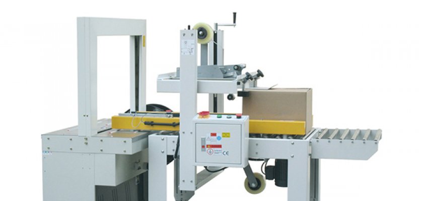 封箱打包一体机是一款集封箱、打包为一体的自动化设备。该封箱打包一体机采用将封箱机皮带加长的原理,用封箱机的驱动皮带将物品输送到打包机的台面上,整套设备由同一PLC控制。即解决了客户封箱打包整体作业的需求,同时大大为客户节省了生产成本,是一款经济实用的自动化包装设备。