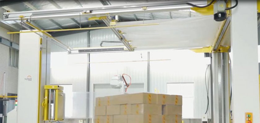 全自动在线缠绕机是一款配合自动流水线一起使用的一款缠绕机,在线式缠绕机由PLC控制,可实现自动检测,自动输送,自动缠绕包装、自动上断膜一整套包装工序,完全实现无人化操作;自动覆膜机是将托盘货物顶部覆盖一层防雨膜,与缠绕机配合实现对托盘五面覆盖包装,起到防尘防潮加固等作用。适用于托盘类货物,较大较重的物品缠绕包装。